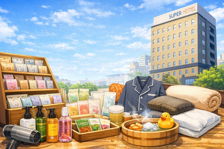 この記事では、スーパーホテル千葉駅前のアメニティについて、客室に完備されているものから女性向けの特別なアメニティ、さらには大浴場の設備まで詳しくご紹介します。